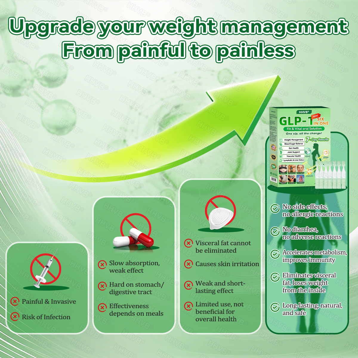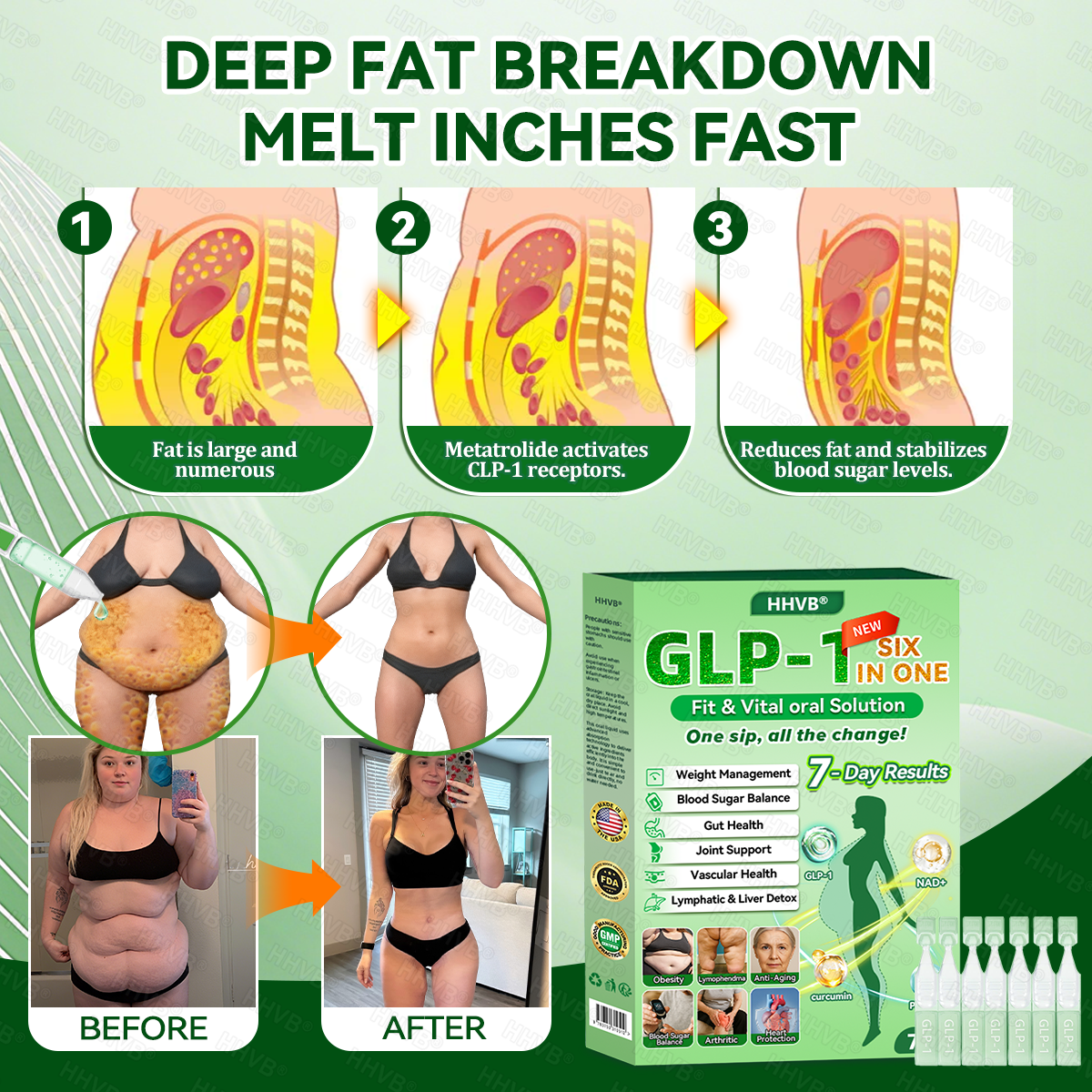 In clinical studies, users of HHVBยฎ NAD+ GLP-1 SIX-IN-ONE Fit&Vitalย Oral Solutionย achieved impressive results, with some losing as much as 6โ8 lbs of stubborn fat in just one week.With just one dose every day, it effectively targets the burning of visceral and abdominal fat, helping to sculpt a leaner body โ no intense workouts required.
