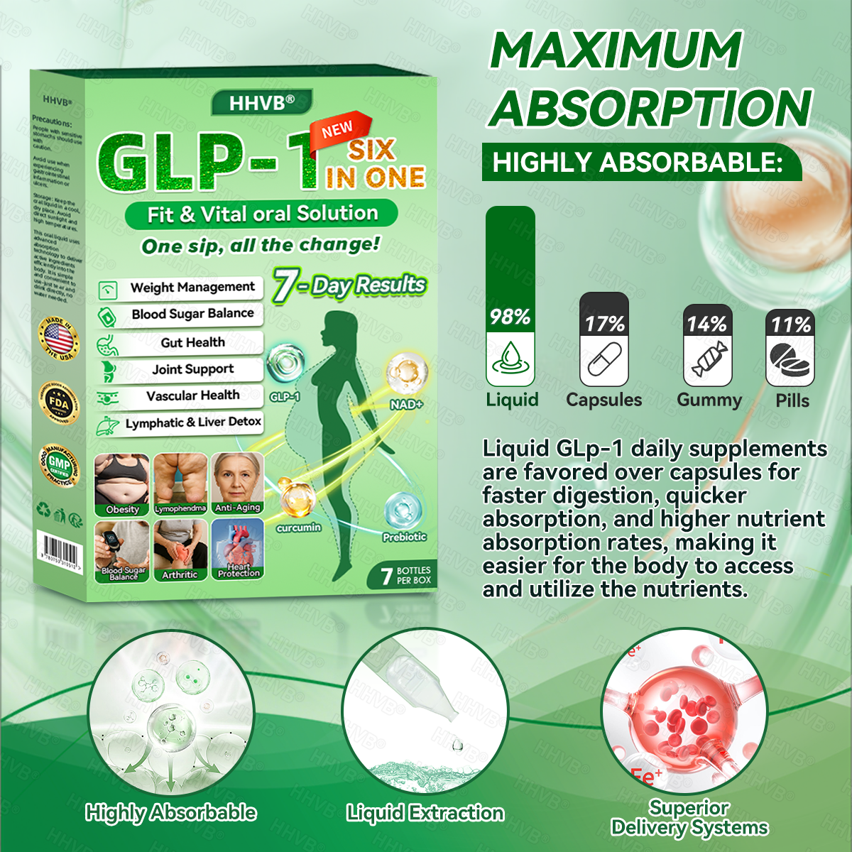 "As an endocrinologist, I am committed to finding effective and natural solutions for metabolic health and weight management. After extensive research and clinical trials with over 5,000 participants, I have found that HHVBยฎ NAD+GLP-1 SIX-IN-ONE Fit&Vital Oral Solution offers remarkable benefits for metabolism, appetite control, and overall well-being. This formula naturally supports GLP-1 activation, helping regulate blood sugar levels, curb cravings, and enhance fat burning. Its powerful blend of apple cider vinegar, turmeric, and other natural ingredients not only aids in healthy weight loss but also promotes digestive health, boosts immunity, and supports long-term metabolic balance. With the backing of modern medical research, HHVBยฎย is a trusted, science-driven choice for those seeking a natural and effective approach to weight management and overall health."